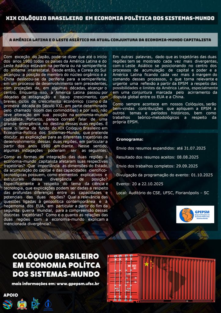 XIX Colóquio Brasileiro em Economia Política dos Sistemas-Mundo